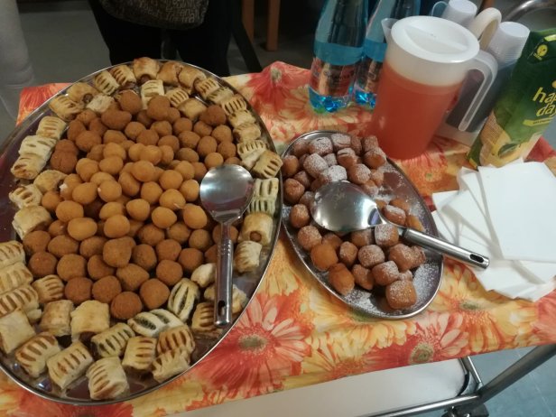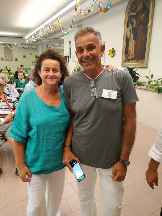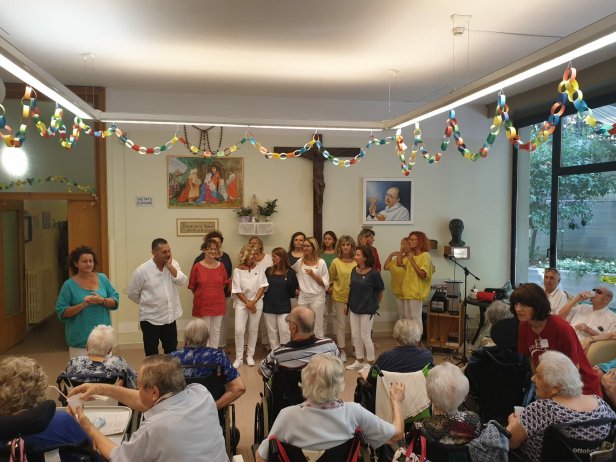 Anche se sono solo le 16 riusciamo a raggiungere un numero di coristi sufficiente per riuscire a fare un concerto. Quindi arriva Renata, che ha voluto fortemente questo incontro, poi Luciana, la direttrice (che ha già fatto il giro di chissà quante stanze) e Paolo, l’unico uomo SEMPRE PRESENTE (però beato tra le donne!)