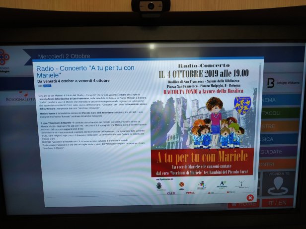 con le interviste di Michele Bettini (nella trasmissione: “Teste di calcio”) e Manes Bernardini (nella trasmissione: “Finestra su Bologna”); grazie al servizio di Ètv con l’intervista di Giuseppe Pilloni; grazie al tabellone informativo di Bologna Welcome