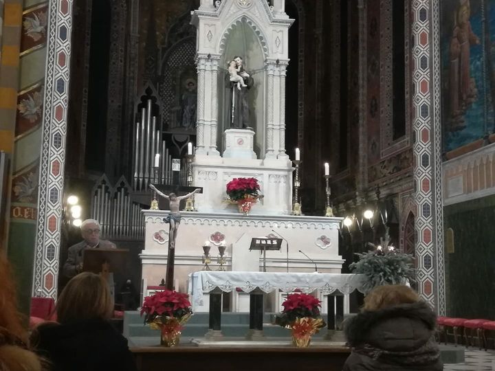 Siamo presenti nelle panche della chiesa, troppo distanti l’uno dall’altra, dopo mesi di lontananza. Proprio oggi che di voglia di abbracciare e stringere ce n’è così tanto bisogno. Siamo qui a ricordarti con il sacrificio più grande per dei coristi che portano il tuo nome e non possono cantarti. Perché è proprio nel canto che ti sentiamo presente, negli attacchi e nelle pause, nelle parole scandite e sopra le note. Ci hai fatto il regalo più grande che è riuscire a diventare un tutt’uno in una canzone, nonostante le nostre storie così diverse, le nostre teste diventate dure e a volte spigolose. Nella dimensione corale da adulti quadrati diventiamo bambini in cerchio. Solo con gli occhi abbiamo potuto ricordarti, occhi pieni della tua musica.