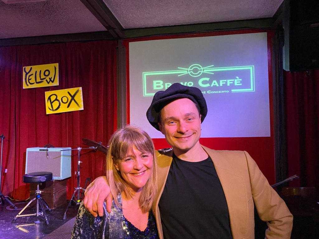 Il Bravo Caffè è uno dei miei locali preferiti perché ha un’atmosfera un po’ chic e un po’ fuori tempo. Già scendendo gli scalini che portano al tavolo di fronte al palco, pregusto la serata e sento un guizzo di felicità, infatti stasera la poliedrica Roberta Giallo farà gli onori di casa ospitando vari artisti. Insieme a lei c’è Franga, la zia, che con il suo accento marchigiano, sdrammatizza e semplifica facendo emergere un’altra vena artistica di Roberta che vola leggiadra da un ruolo all’altro: cantautrice, attrice, scrittrice, pittrice, comica e cos’altro lo dirà il tempo.