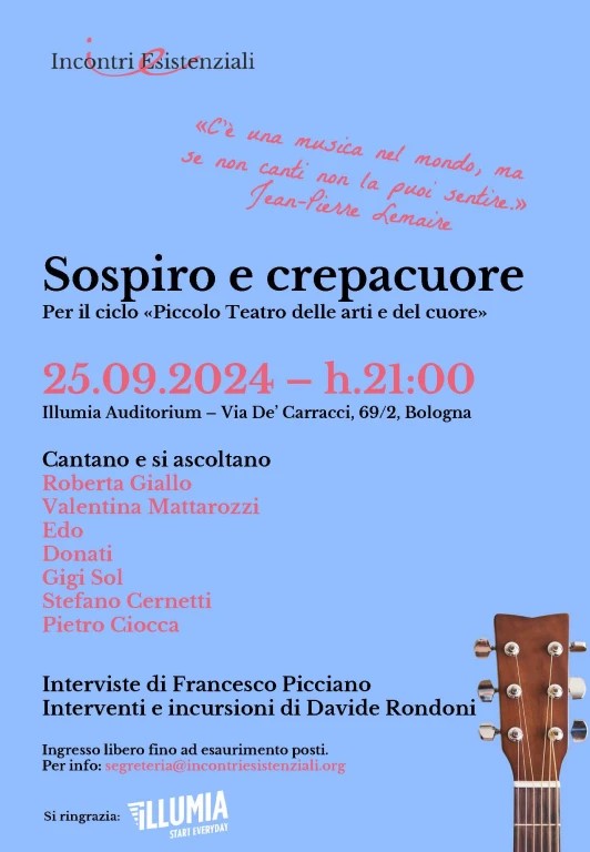 Accesa dall’inquietudine e mossa dalla curiosità ho partecipato nel pubblico all’incontro all’Illumia Auditorium “Sospiro e crepacuore” nel ciclo de “Il piccolo teatro delle arti e del cuore”.