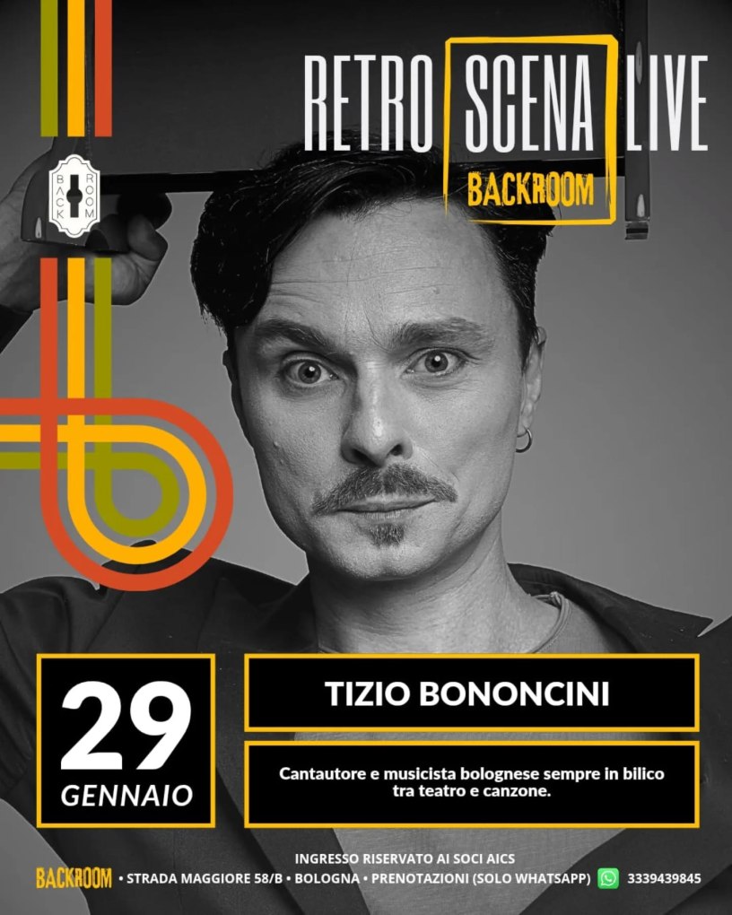 E c’è ancora tanto da scoprire visto che proprio stasera ha inizio la rassegna “Retroscena Live” con Tizio Bononcini cantautore bolognese sempre in bilico tra teatro e canzone… o, come lo vedo io, un vero “NarrAttore”.
