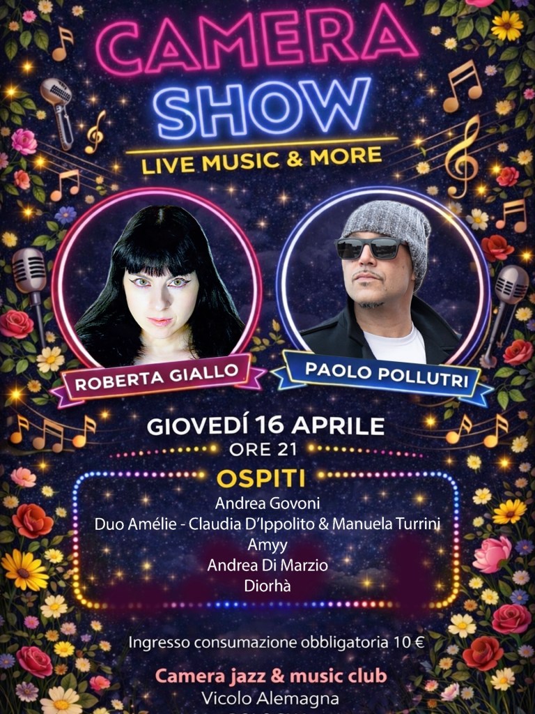 Ma quando invece si trova dove andare, l’appuntamento diventa immancabile. È quello che è successo al Camera Show di Bologna: sei serate, più di trenta artisti, e un entusiasmo acceso nel pubblico, palpabile. Protagonisti fondamentali di questo esperimento sono stati i direttori artistici Roberta Giallo e Paolo Pollutri, che hanno curato e scelto le proposte, e Davide De Rose che ha reso possibile questo spazio di incontro.