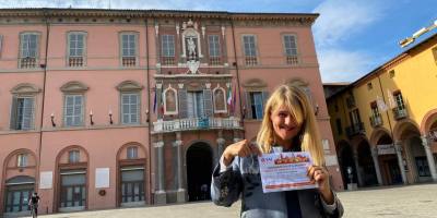 Una turista al Palazzo Comunale di Imola